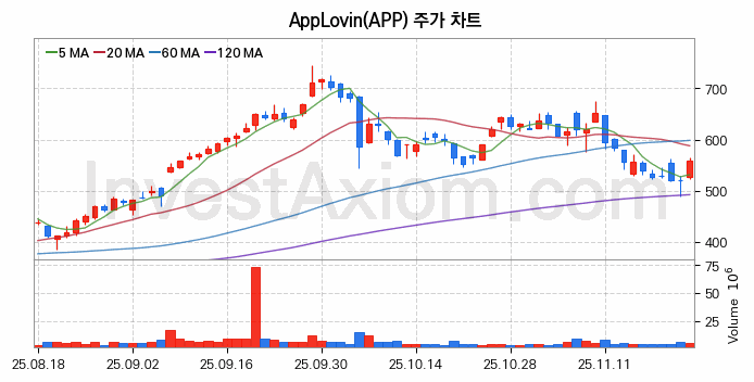 미국 주식 분석, AppLovin (앱플로빈 Class A) 주가 차트 분석과 주식 기간 수익률 및 변동성 분석 (2025-11-24)