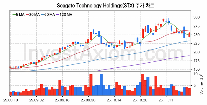 미국 주식 분석, Seagate Technology Holdings (STX) 주가 차트 분석과 주식 기간 수익률 및 변동성 분석 (2025-11-24)