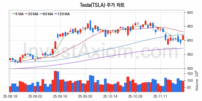 미국 주식 분석, Tesla (테슬라) 주가 차트 분석과 주식 기간 수익률 및 변동성 분석 (2025-11-24)