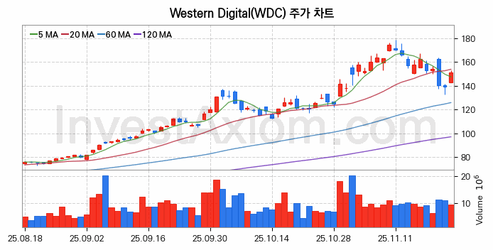 미국 주식 분석, Western Digital (웨스턴 디지털) 주가 차트 분석과 주식 기간 수익률 및 변동성 분석 (2025-11-24)
