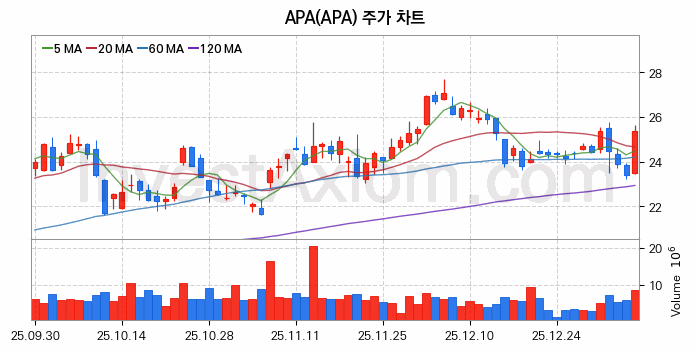 미국 주식 분석, APA (APA (US)) 주가 차트 분석과 주식 기간 수익률 및 변동성 분석 (2026-01-08)