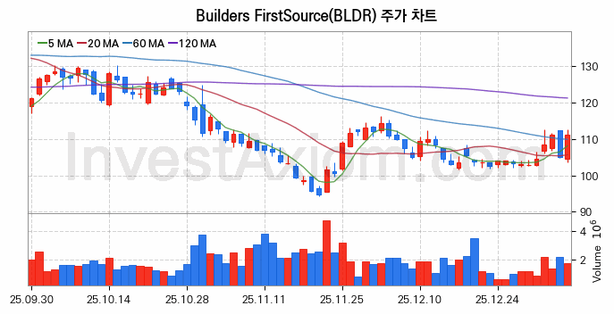 미국 주식 분석, Builders FirstSource (빌더스 퍼스트소스) 주가 차트 분석과 주식 기간 수익률 및 변동성 분석 (2026-01-08)