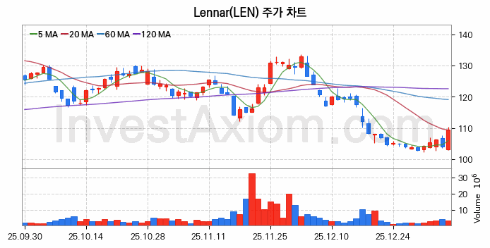 미국 주식 분석, Lennar (레나 Class A) 주가 차트 분석과 주식 기간 수익률 및 변동성 분석 (2026-01-08)