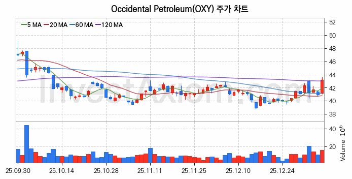 미국 주식 분석, Occidental Petroleum (옥시덴털 페트롤리움) 주가 차트 분석과 주식 기간 수익률 및 변동성 분석 (2026-01-08)