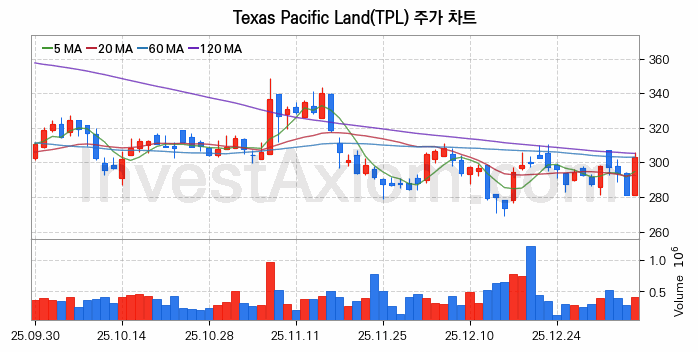 미국 주식 분석, Texas Pacific Land (텍사스 퍼시픽 랜드) 주가 차트 분석과 주식 기간 수익률 및 변동성 분석 (2026-01-08)