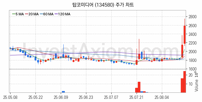 웹툰 관련주 분석, 웹툰주 주가 등락률 상위 주식 요약 분석 (25.08.18)